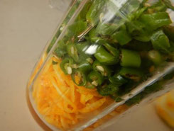 特に青唐辛子は出回る時期も量も少ないので、見つけた時は、細かく刻んで下ごしらえして冷凍しておき、柚子が手に入ったら作るようにしています。