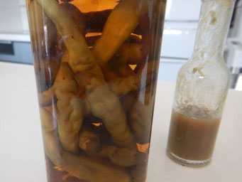 ● 赤唐辛子で作れば赤のタバスコができます。手に入る時に手に入る唐辛子で作ります。乾燥した赤唐辛子でも作ることができます。