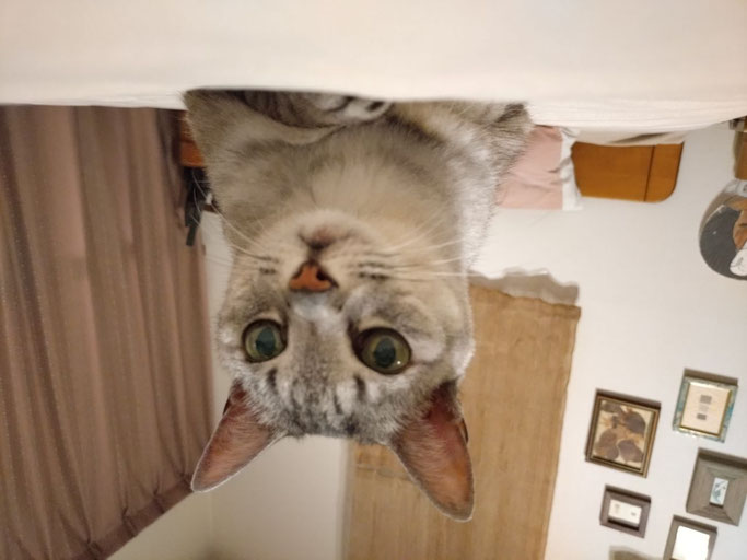 しばらく鳴くので無視すると、片手で私の顔をチョンチョンして息をしているかクンクンします。可愛いので、しばらく無視し続けています。